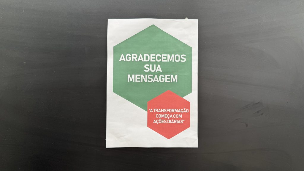 A reportagem mural também contou com uma sessão participativa, em que estudantes universitários, professores e funcionários poderiam deixar suas opiniões a partir de perguntas motivadoras sobre as mudanças climáticas. O objetivo era incentivar que os visitantes da Reportagem refletissem sobre o que fazem quanto à crise climática.