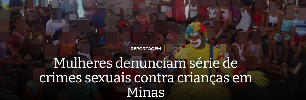 A 300 km de Belo Horizonte, as repórteres Naiana Andrade e e Elisangela Colodeti descobriram, na cidade de Várzea da Palma (de pouco mais de 30 mil habitantes), no ano passado, uma história de abusos sexuais em série, a partir de uma denúncia em rede social. A ação das jornalistas foi fundamental para que a investigação policial também andasse. O acusado pela Justiça é Dinamá Rezende, que encontrou diferentes caminhos para se aproximar de crianças e adolescentes, e cometer as violências.