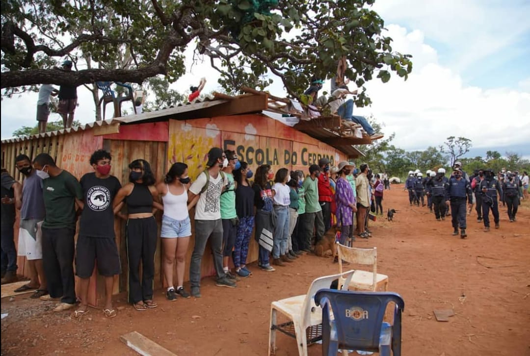 Emocionado, Andrei Mendes testemunha que há uma corrente de voluntários que fizeram, junto aos moradores ao redor do Escola do Cerrado, quando os policiais vieram derrubar as tendas, “ganhando, assim, algum tempo”.