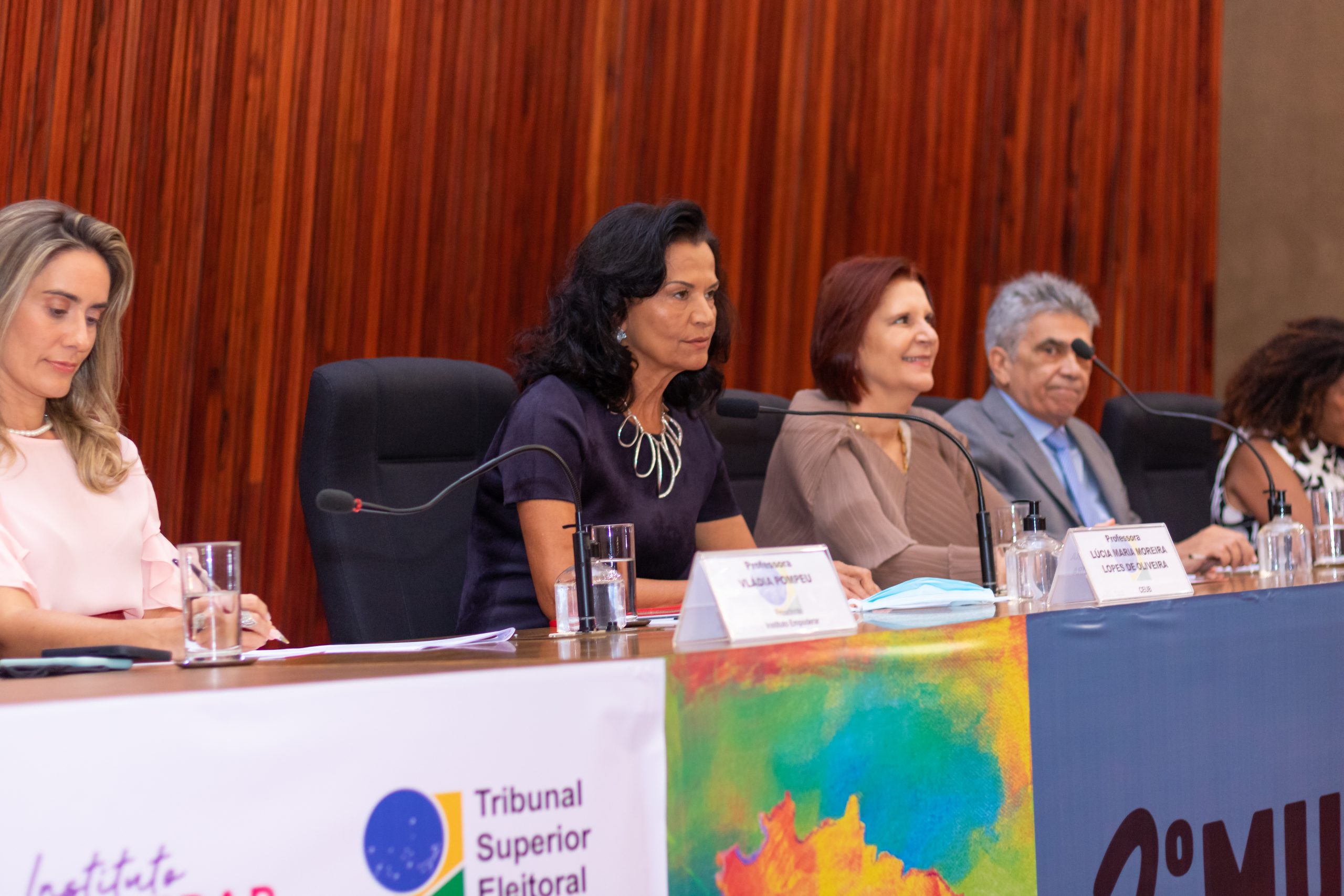 Na mesa, as mulheres também foram representadas pela pró-reitora do CEUB, Lucia Maria Oliveira, pela gestora do Centro de Inovação e Estudos Sociais do CEUB, Mônica Lopes, pela presidente do Instituto Empoderar, Vladia Pompeu, e pela atriz Zezé Mota. O evento teve a presença do reitor do Ceub, Getúlio Américo Moreira Lopes.