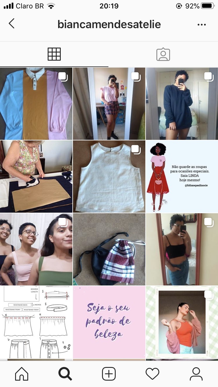 Mas a harmonia do violão não é a única que ecoa no Distrito Federal. Aos 24 anos, recém formada e frente à pandemia, Bianca Mendes se desdobra na máquina de costura, e faz do seu quarto, um ateliê. Modelista e costureira, a jovem precisou se restabelecer após perder o emprego. O apoio que Bianca encontrou está nas redes sociais. Com tempo e vontade, a profissional confecciona peças em casa e de quebra compartilha tudo através do Instagram. “Tive que me reinventar, começar a publicar nos stories, mostrar a rotina e processos de cada peça que eu estava fazendo. Durante março e abril o trabalho deu uma parada, mas logo depois foi voltando aos poucos,” conta a jovem.