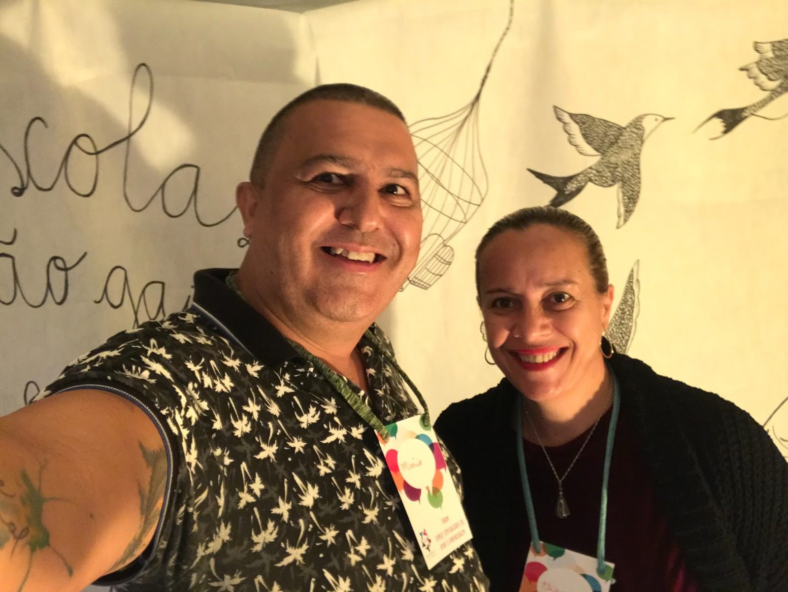 Os pedagogos Mário César e Eliane Castro durante o Fórum Serviço Especializado de Apoio à Aprendizagem realizado em 2019. (Foto: Arquivo Pessoal)