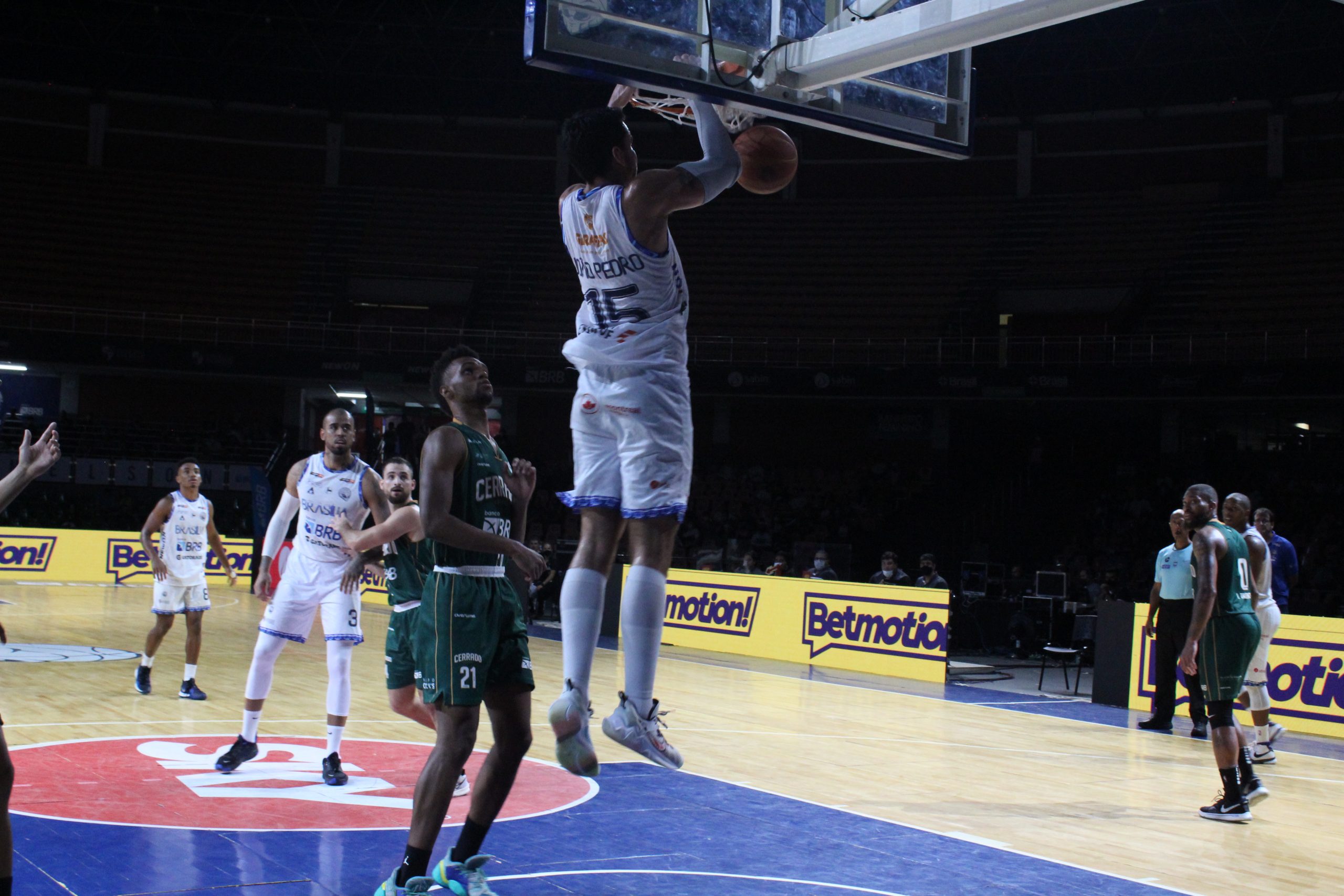 João Pedro, o destaque do Brasília no terceiro quarto, enterra para tentar cortar a vantagem do Cerrado (Foto: Bernardo Guerra)