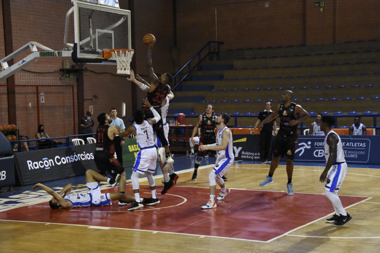 Eddy (de preto) disputa um rebote ofensivo (Foto: Gabriella Tomaz)