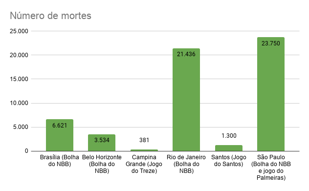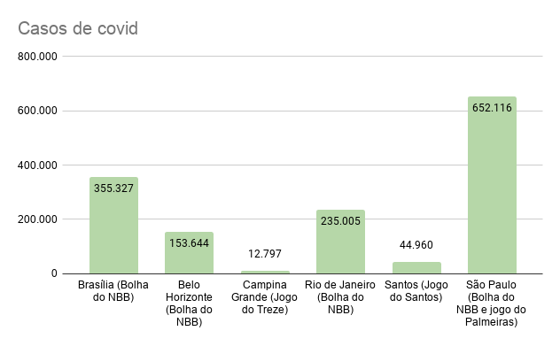 Tendo como base o infográfico das cidades, Brasília tem o maior número de casos em relação às outras cidades que sediariam todos os jogos que estão vindo para cá.