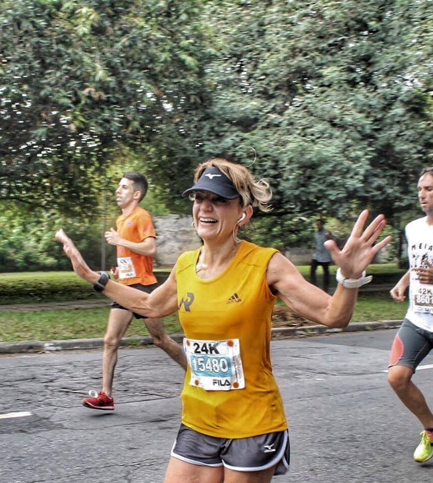 Na véspera de fazer 40 anos de idade, ela era sedentária e se identificou rapidamente com a corrida. “Entre a decisão de começar a correr e, efetivamente, dar os primeiros passos, foram dois meses. Isso porque eu fui fazer alguns exames, fui atrás de uma assessoria esportiva e, até arrumar tudo isso, levaram dois meses”, disse. A empolgação a levou longe. “Nem imaginava que eu ia emagrecer e nem imaginava que eu ia tão longe como eu tenho ido. Pouco a pouco, passo a passo eu fui melhorando minha performance, emagreci, aumentei as distâncias e, hoje, com 51, eu já fiz sete maratonas, eu vou para minha oitava”.