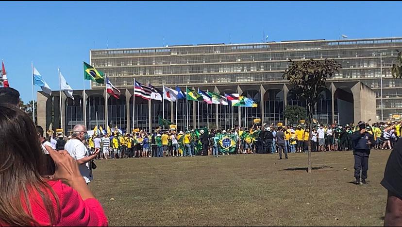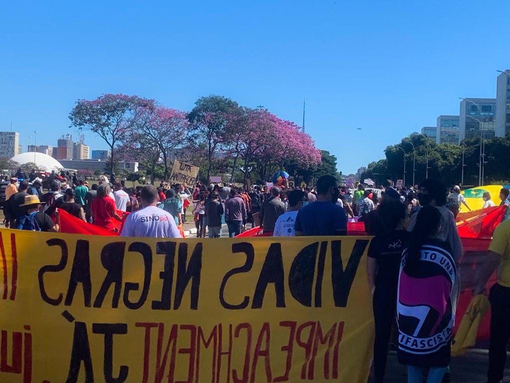 Neste último domingo (21), a Esplanada dos Ministérios voltou a se dividir ao ao meio para viabilizar as manifestações a favor e contra o governo de Jair Bolsonaro. No protesto que se intitula “anti racista” e “antifascista” em Brasília. O evento começou às 9h no Teatro Nacional e aconteceu em paralelo à passeata pró Bolsonaro, a qual acontece com frequência desde o início da pandemia, ambas acabaram por volta de 13h. Os manifestantes se concentraram no Teatro Nacional e marcharam em direção ao Congresso, com bandeiras, cartazes e gritos contra o racismo, o fascismo e defendendo a democracia. Do outro lado da Esplanada, partindo pelo Museu da República, a manifestação pró Bolsonaro tinha uma maior concentração e número de pessoas, as quais exigiam pautas como o fim do comunismo e o fechamento do STF.