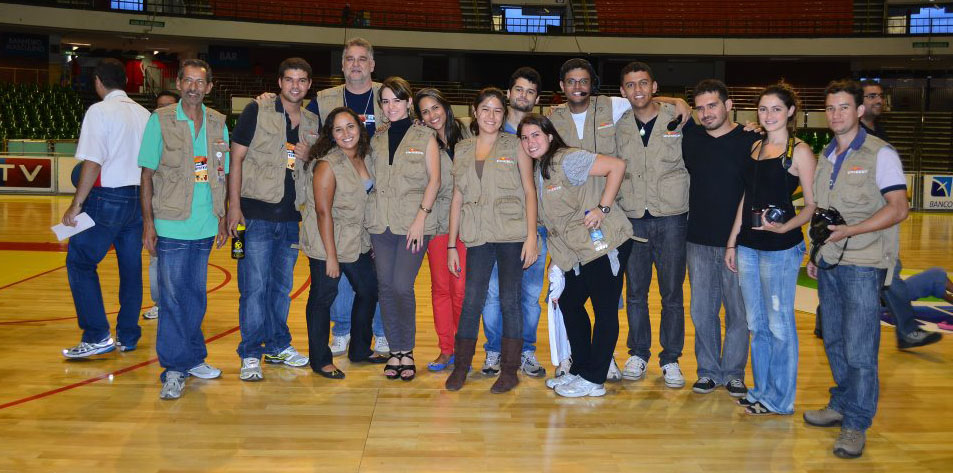 | Equipe da agência de notícias após o jogo no ginásio Nilson Nelson |