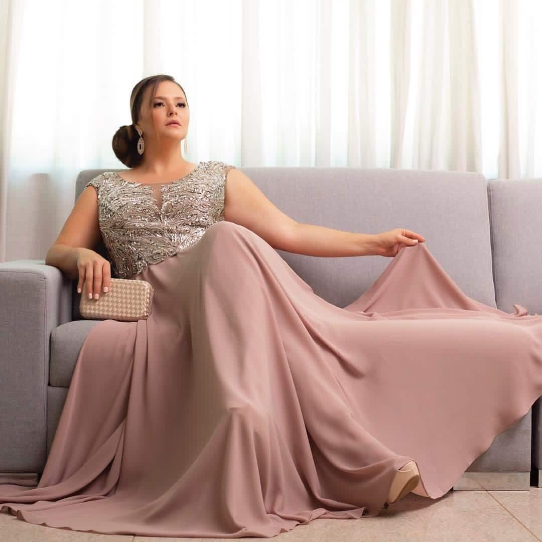 Legenda: Sarah Rocha em editorial de lançamento da loja Closet Vestidos de Festa Plus Size