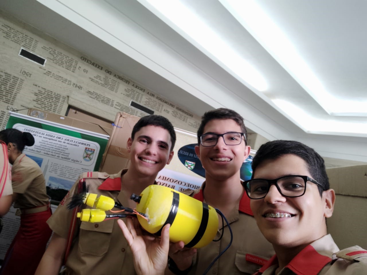 Imagem: Alunos com experimento Bee drone. foto Arquivo pessoal